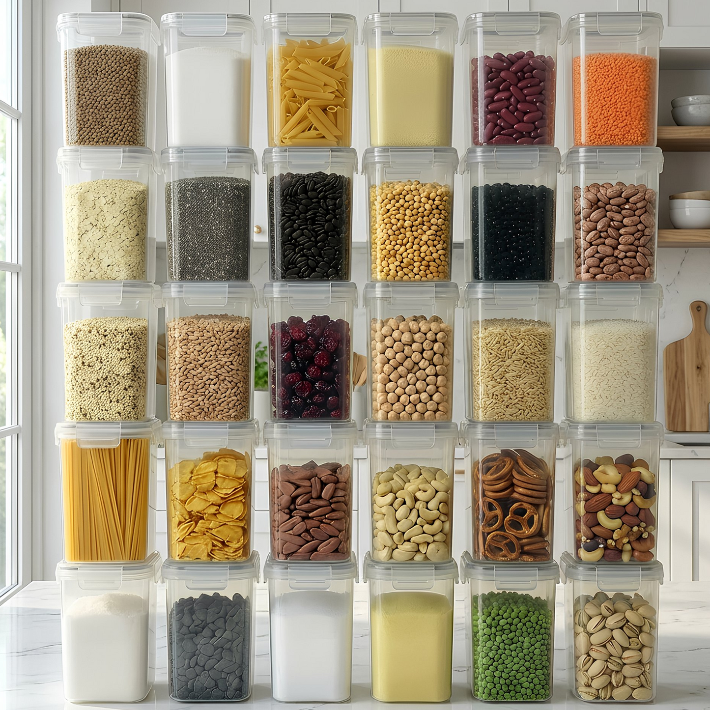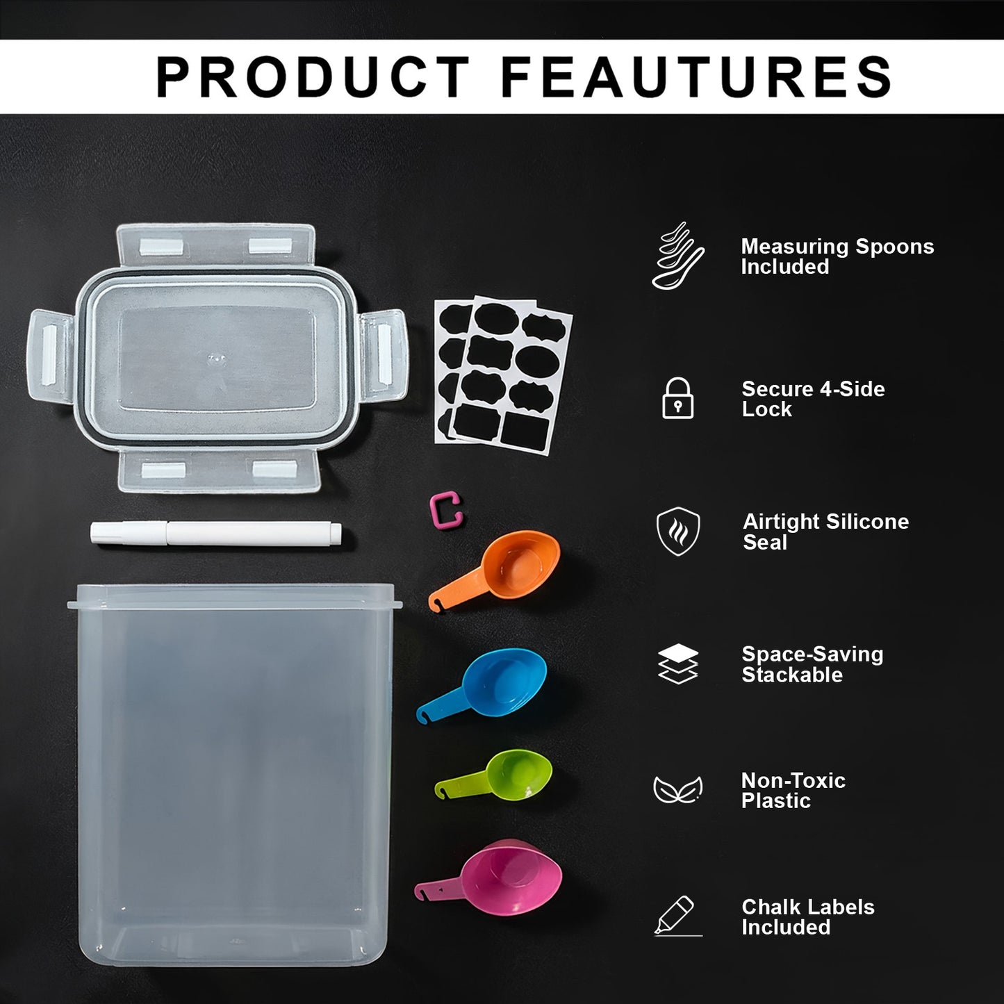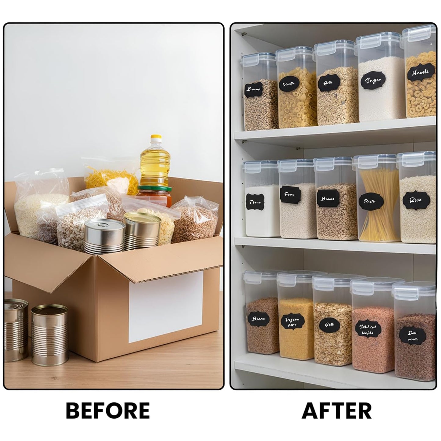 Keep your pantry organized with this 10-piece cereal storage container set. Airtight, BPA-free, and stackable, each container includes locking lids, chalkboard labels, and measuring scoops. Perfect for cereals, pasta, sugar, and dry foods.