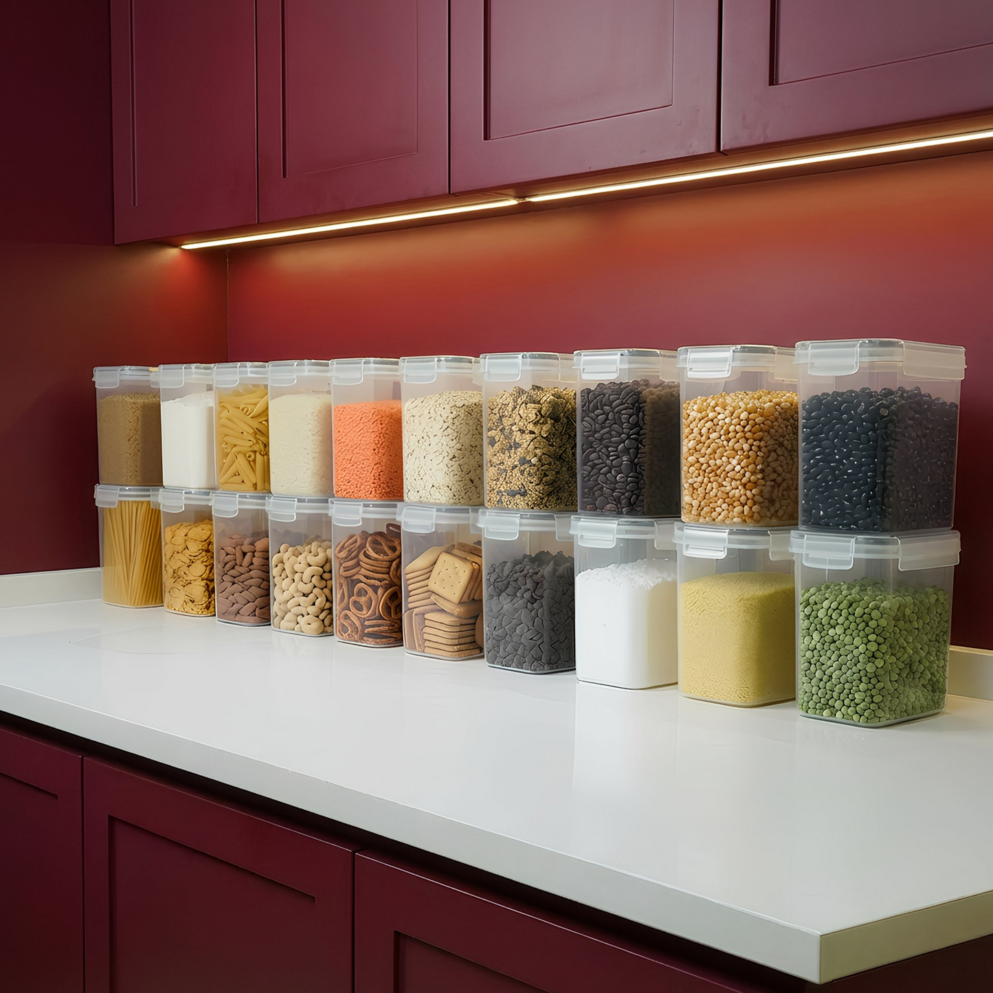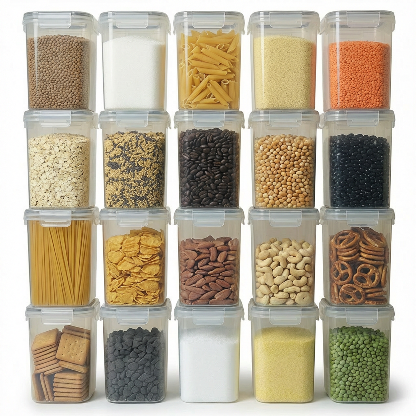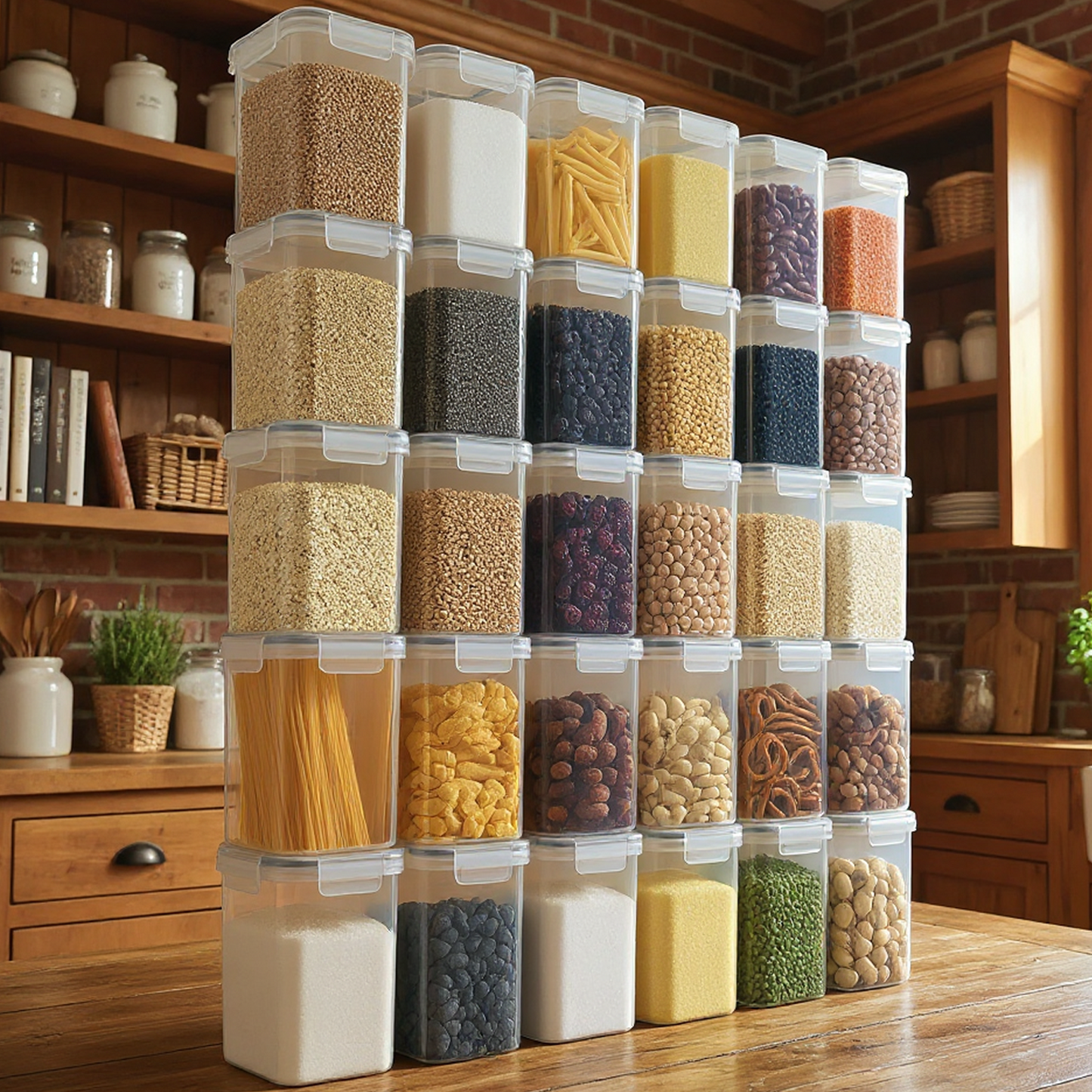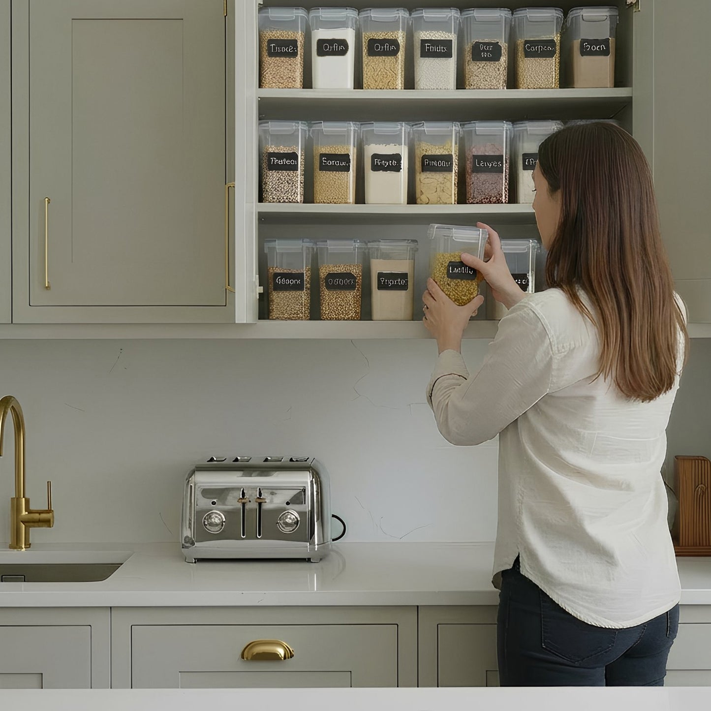 Keep your pantry organized with this 10-piece cereal storage container set. Airtight, BPA-free, and stackable, each container includes locking lids, chalkboard labels, and measuring scoops. Perfect for cereals, pasta, sugar, and dry foods.