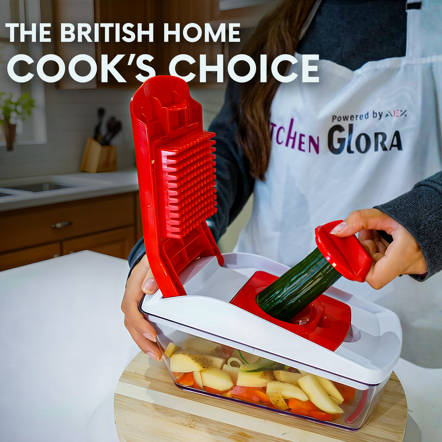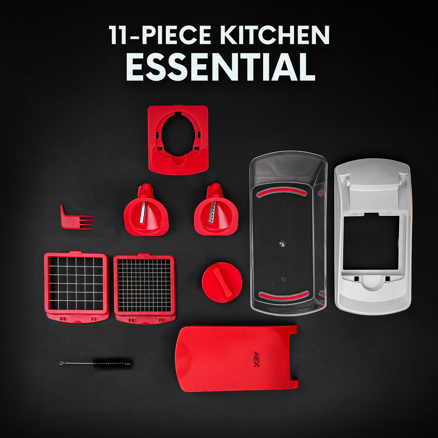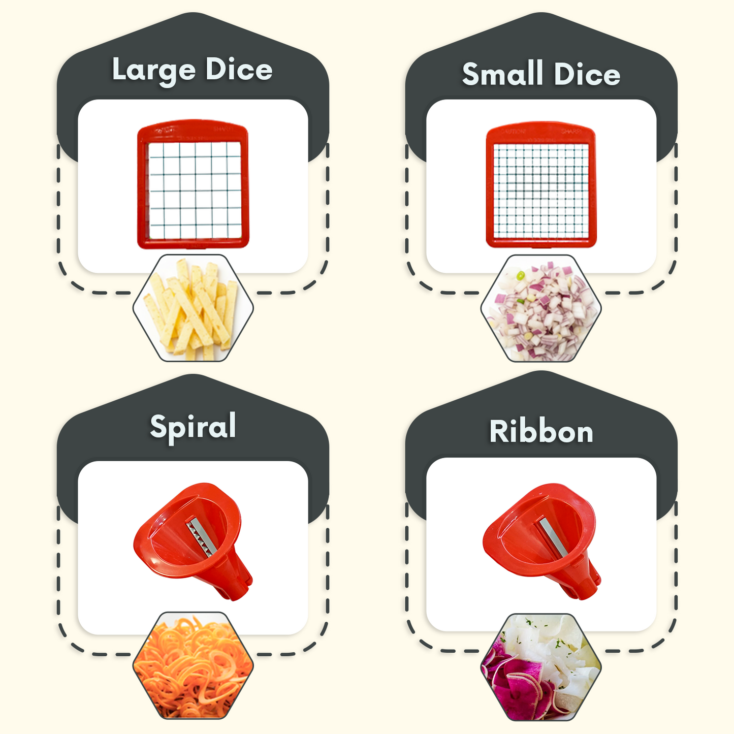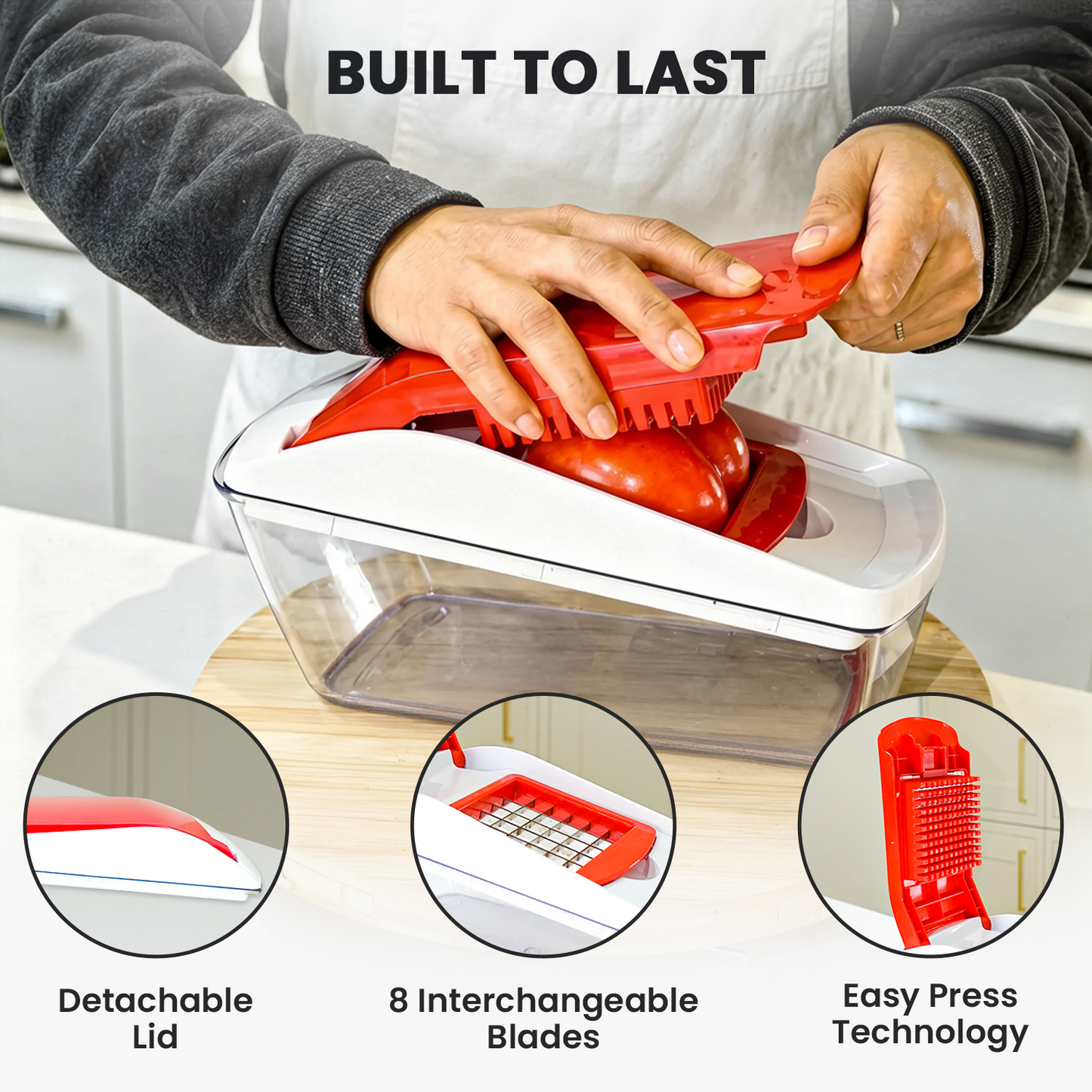 Simplify meal prep with this 8-in-1 vegetable chopper. Featuring eight stainless steel blades, BPA-free construction, and an ergonomic design, it dices, slices, grates, and spirals safely and efficiently. Compact, mess-free, and versatile, perfect for everyday cooking.