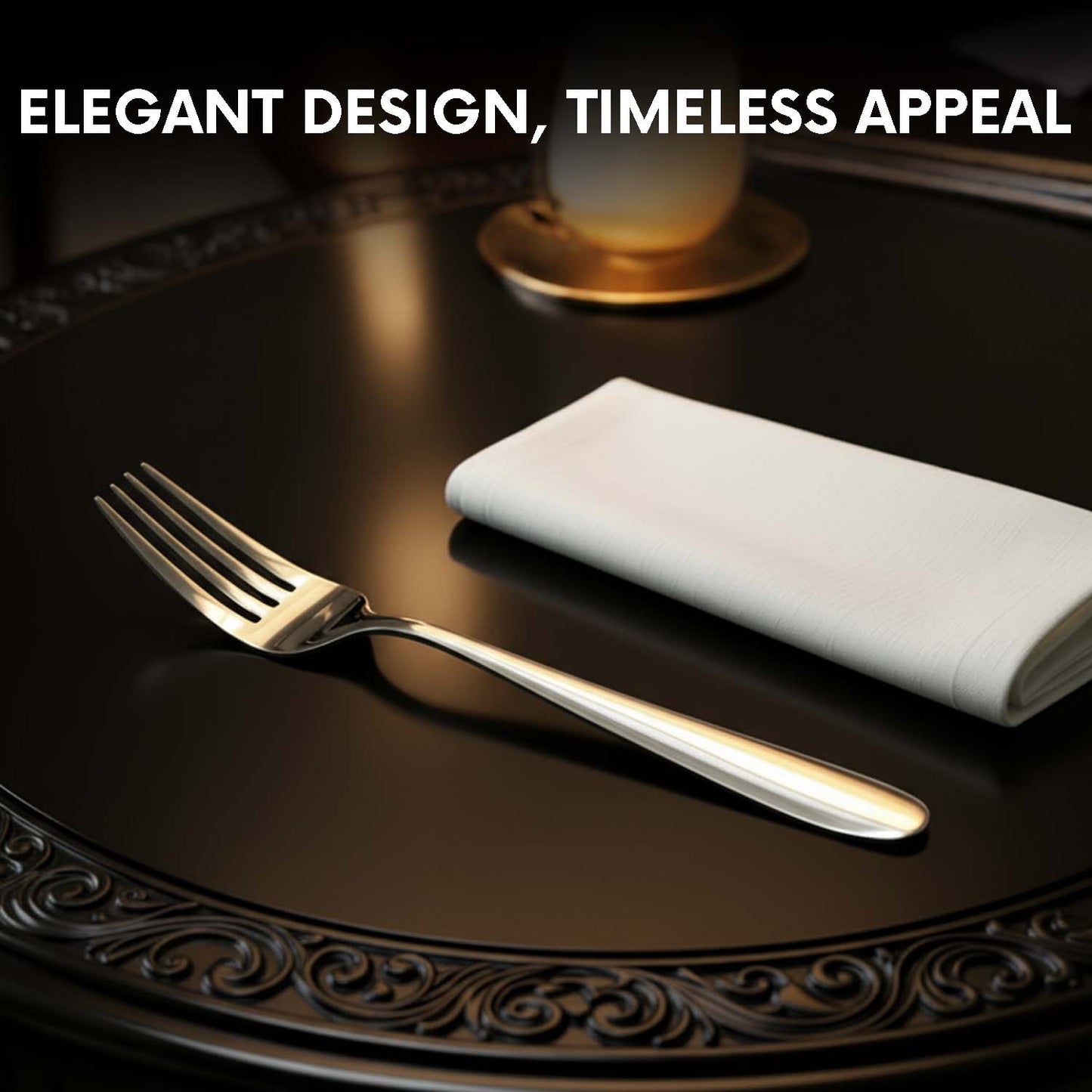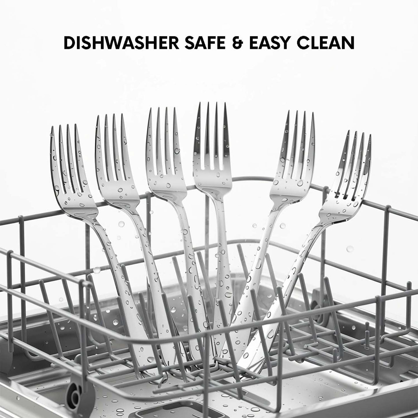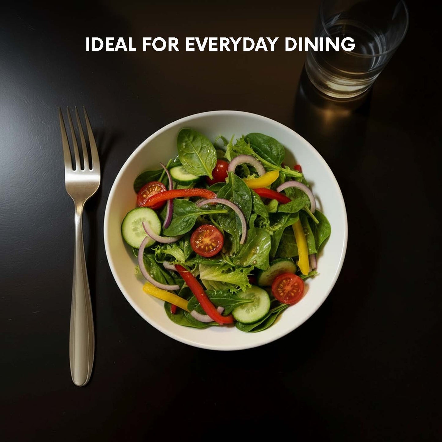 This 6-piece stainless steel dinner fork set combines durability, comfort, and elegance. With polished finishes, ergonomic handles, and a versatile four-tine design, these forks are rust-resistant, dishwasher safe, and perfect for everyday meals, family dinners, or formal occasions.