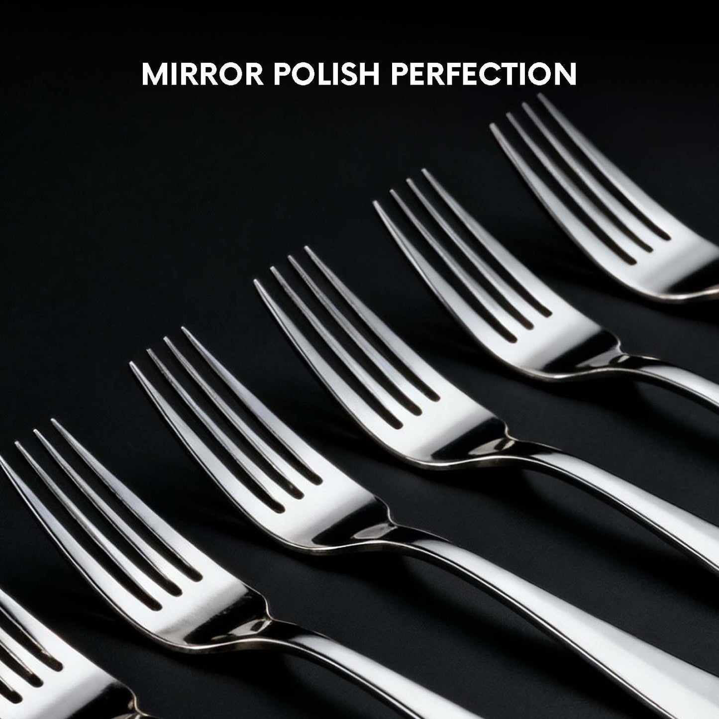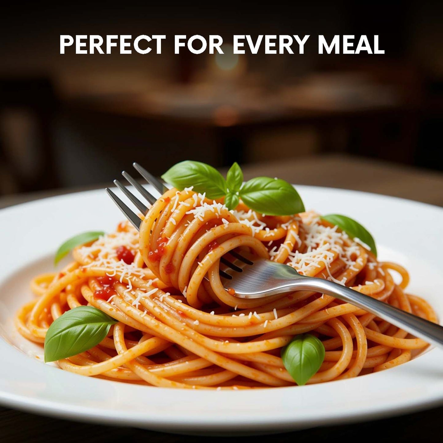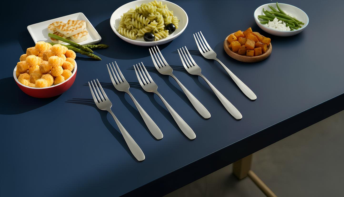 This 6-piece stainless steel dinner fork set combines durability, comfort, and elegance. With polished finishes, ergonomic handles, and a versatile four-tine design, these forks are rust-resistant, dishwasher safe, and perfect for everyday meals, family dinners, or formal occasions.