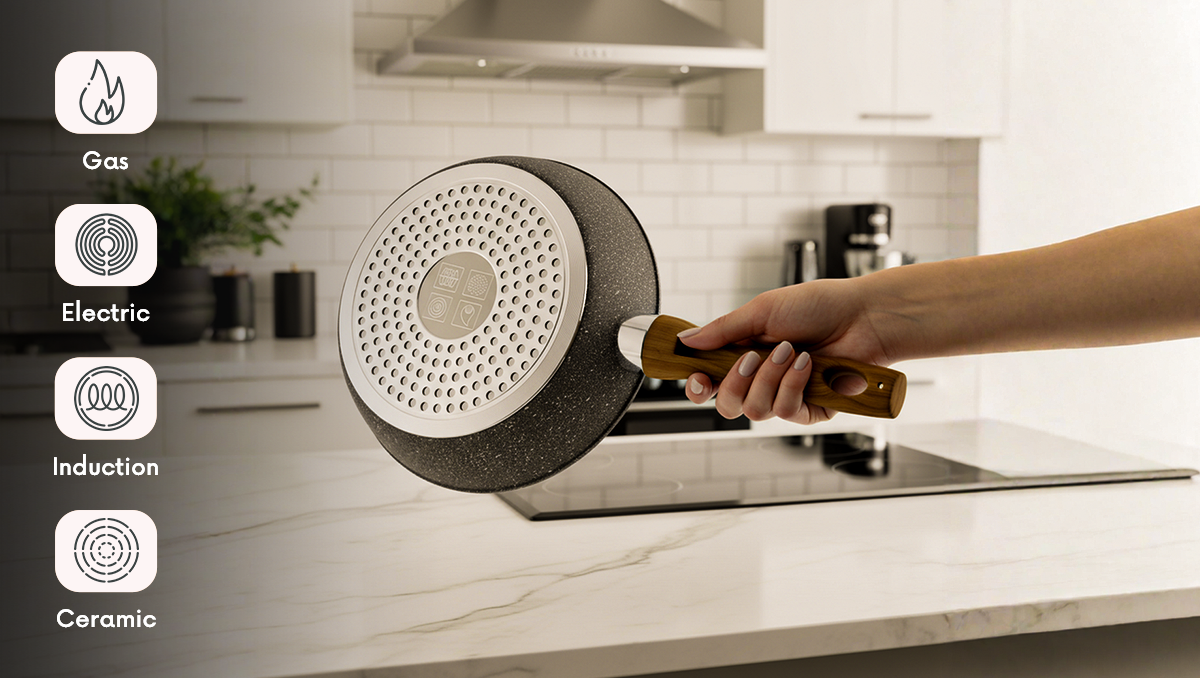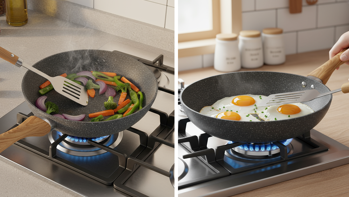 This 2-piece non-stick frying pan set (24cm & 28cm) with lids offers durable, easy-release surfaces, ergonomic heatproof handles, and even heat distribution. Perfect for versatile cooking on gas, electric, induction, or ceramic stovetops.