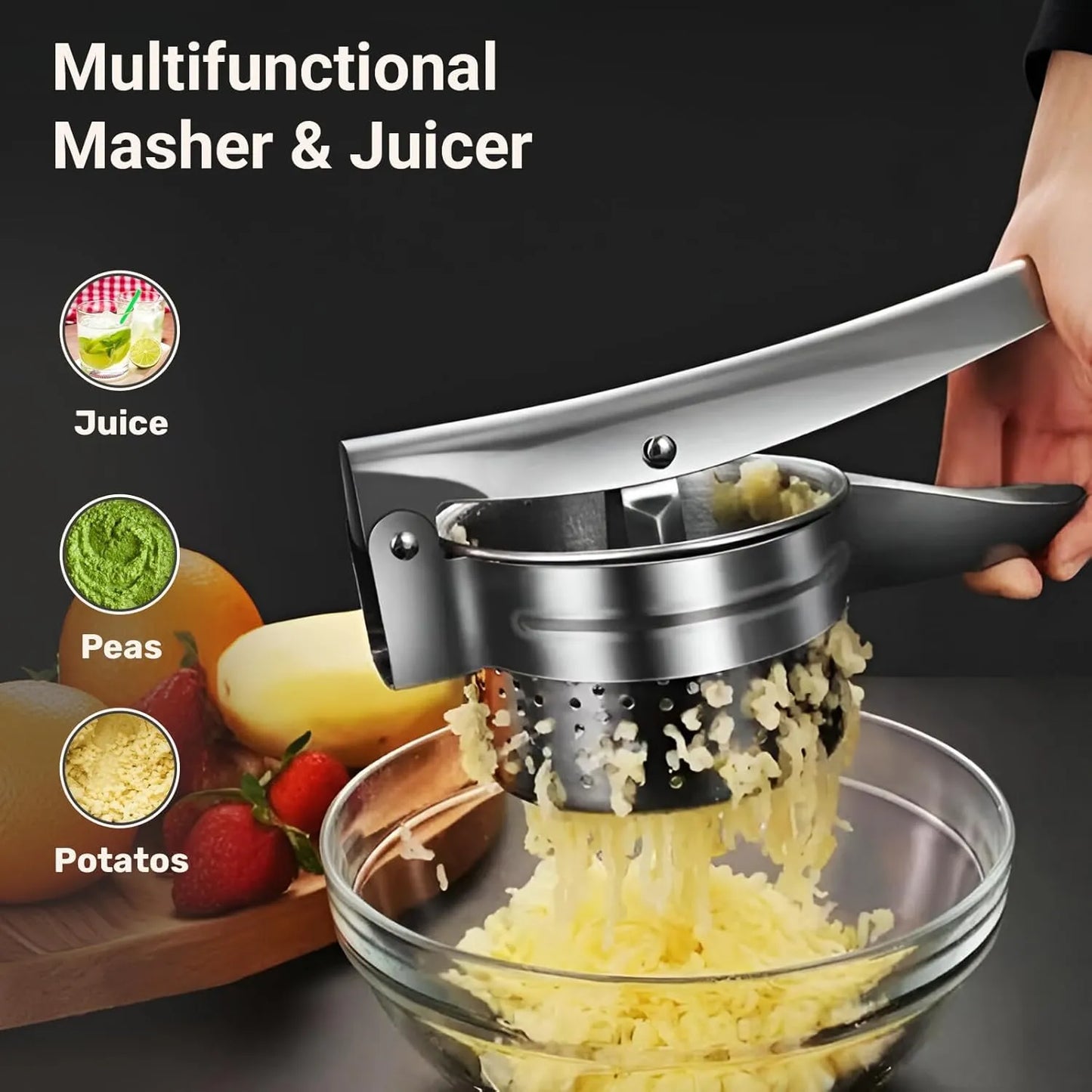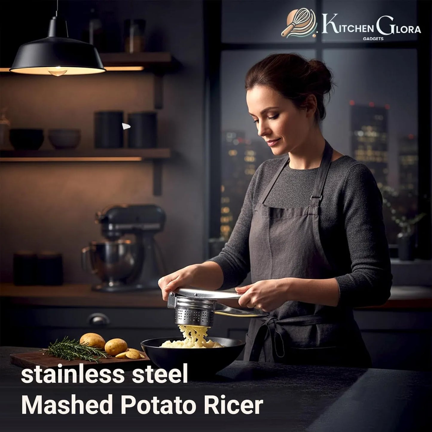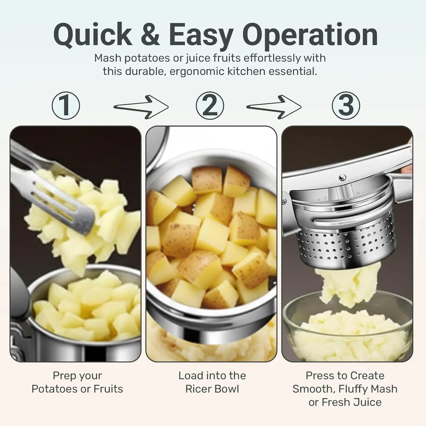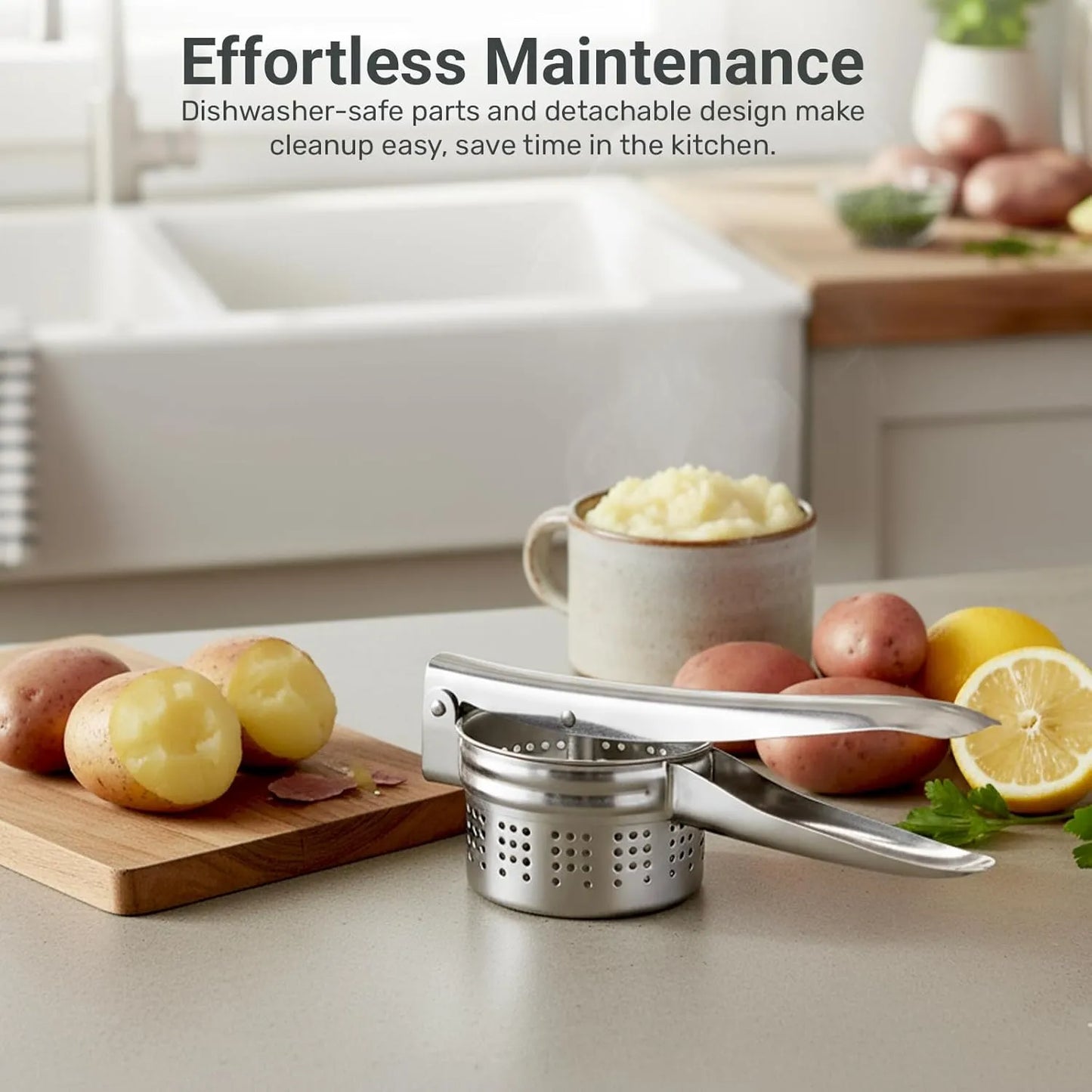 Create smooth, fluffy potatoes effortlessly with this stainless steel potato ricer. Featuring ergonomic lever-action handles, uniform fine holes, and durable, dishwasher-safe construction, it delivers perfect mashed potatoes every time for home cooks and professional kitchens.