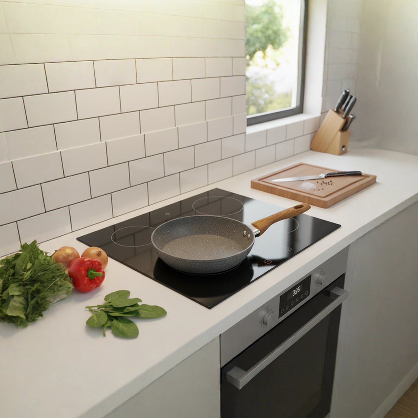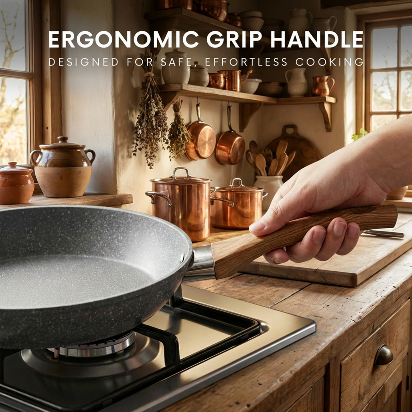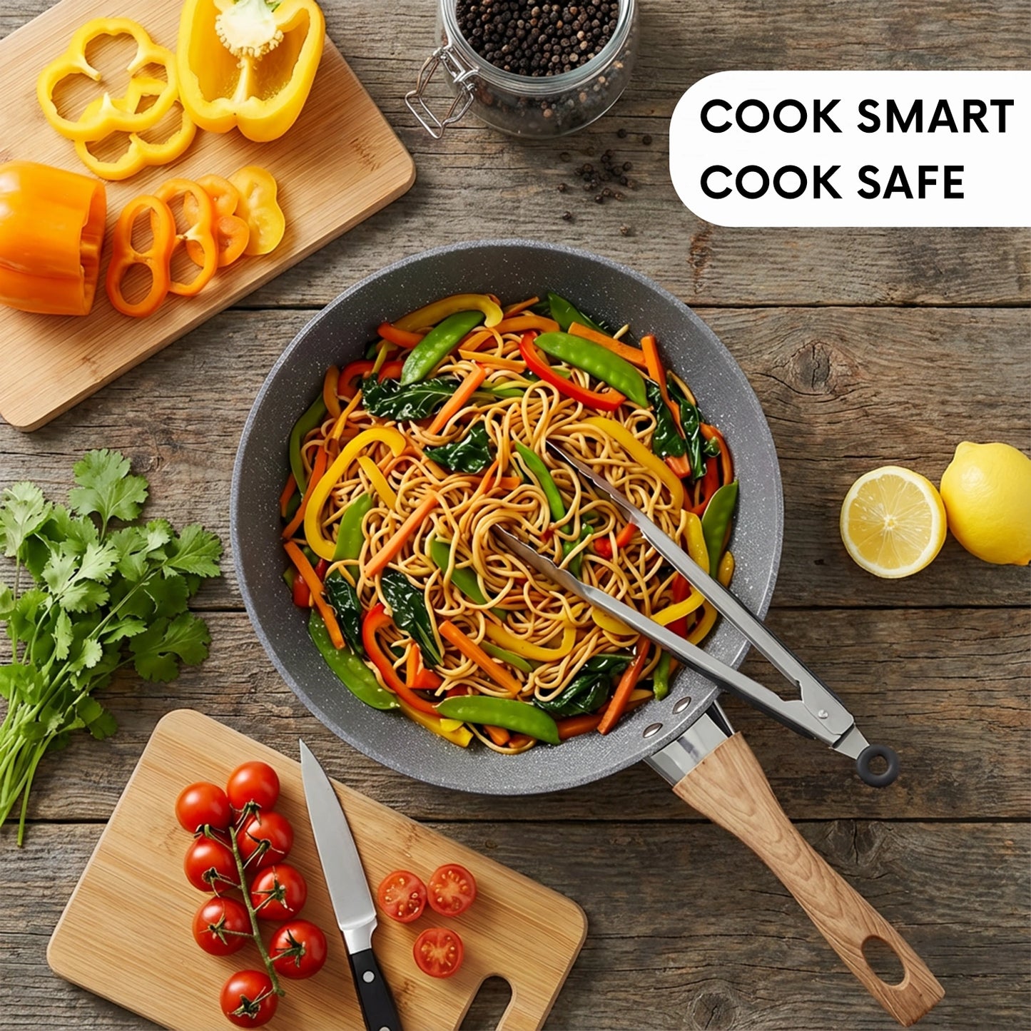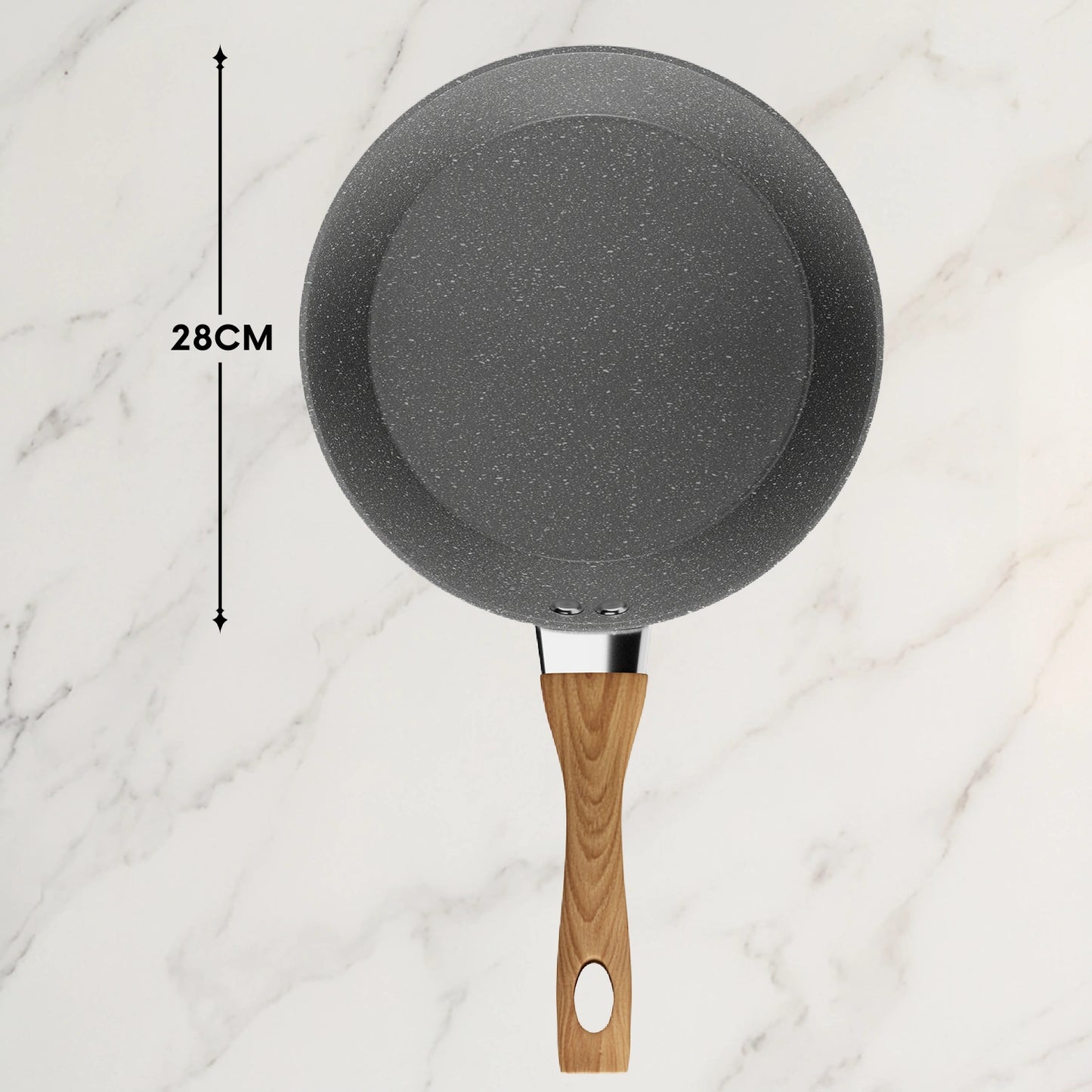 Cook effortlessly with this 28cm nonstick frying pan. Featuring a PFOA-free scratch-resistant surface, heavy-duty die-cast aluminium body, induction-compatible base, and heat-resistant ergonomic handle, it’s perfect for frying, sautéing, and everyday meals.