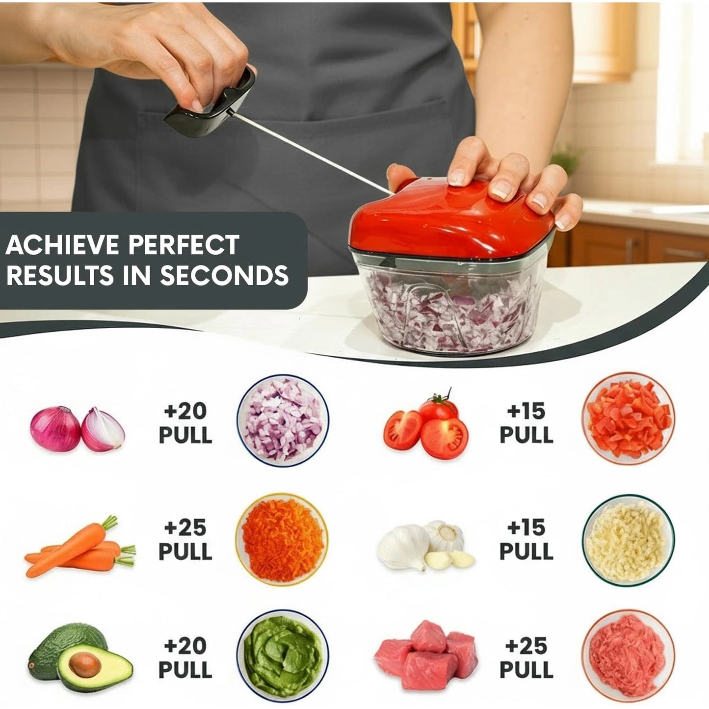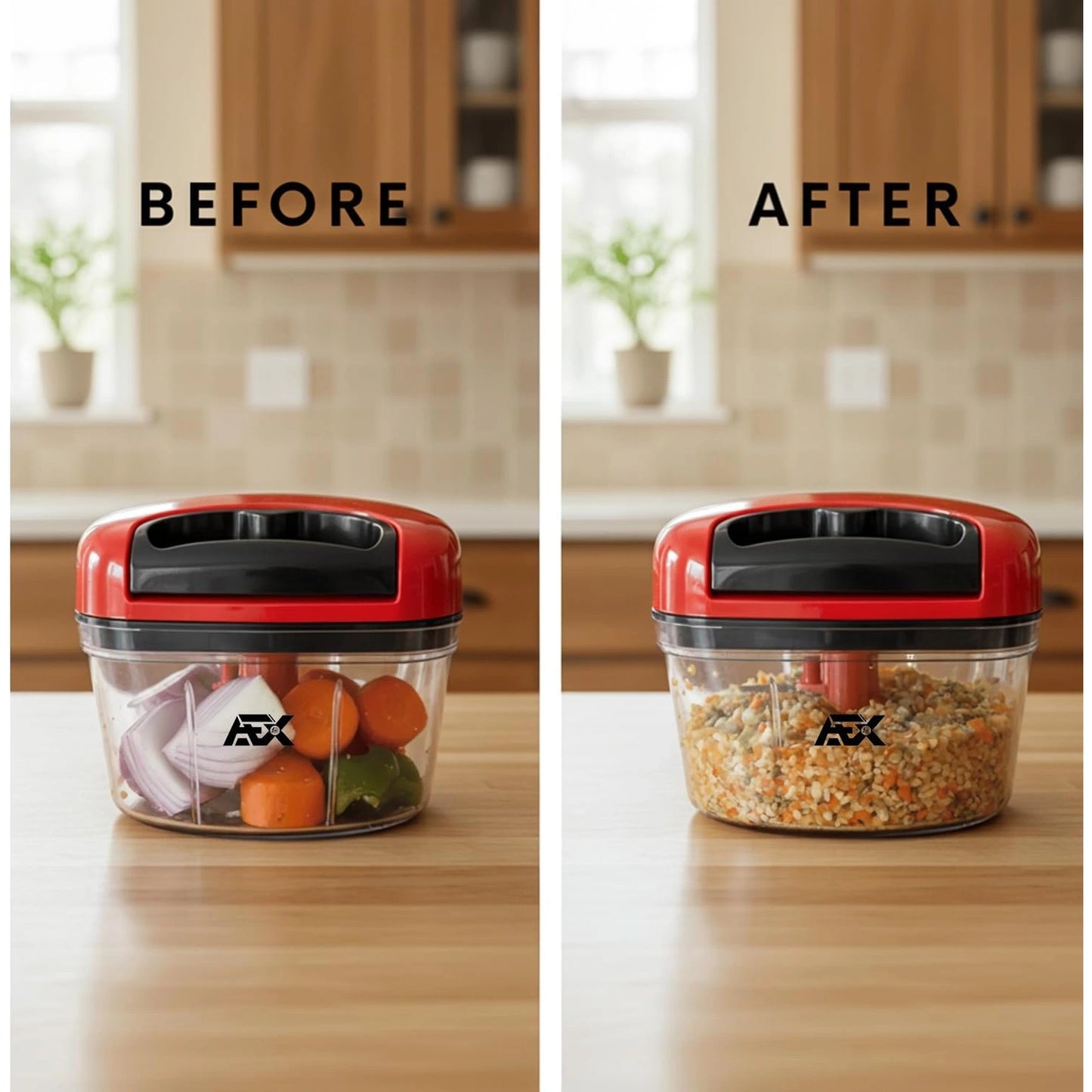 Make meal prep effortless with the AEX Pull-String Vegetable Chopper. Available in 250ml and 550ml sizes, it features sharp stainless steel blades and an easy-pull string mechanism for precise, consistent chopping of vegetables, herbs, nuts, and more. Compact, versatile, and dishwasher safe for everyday use.