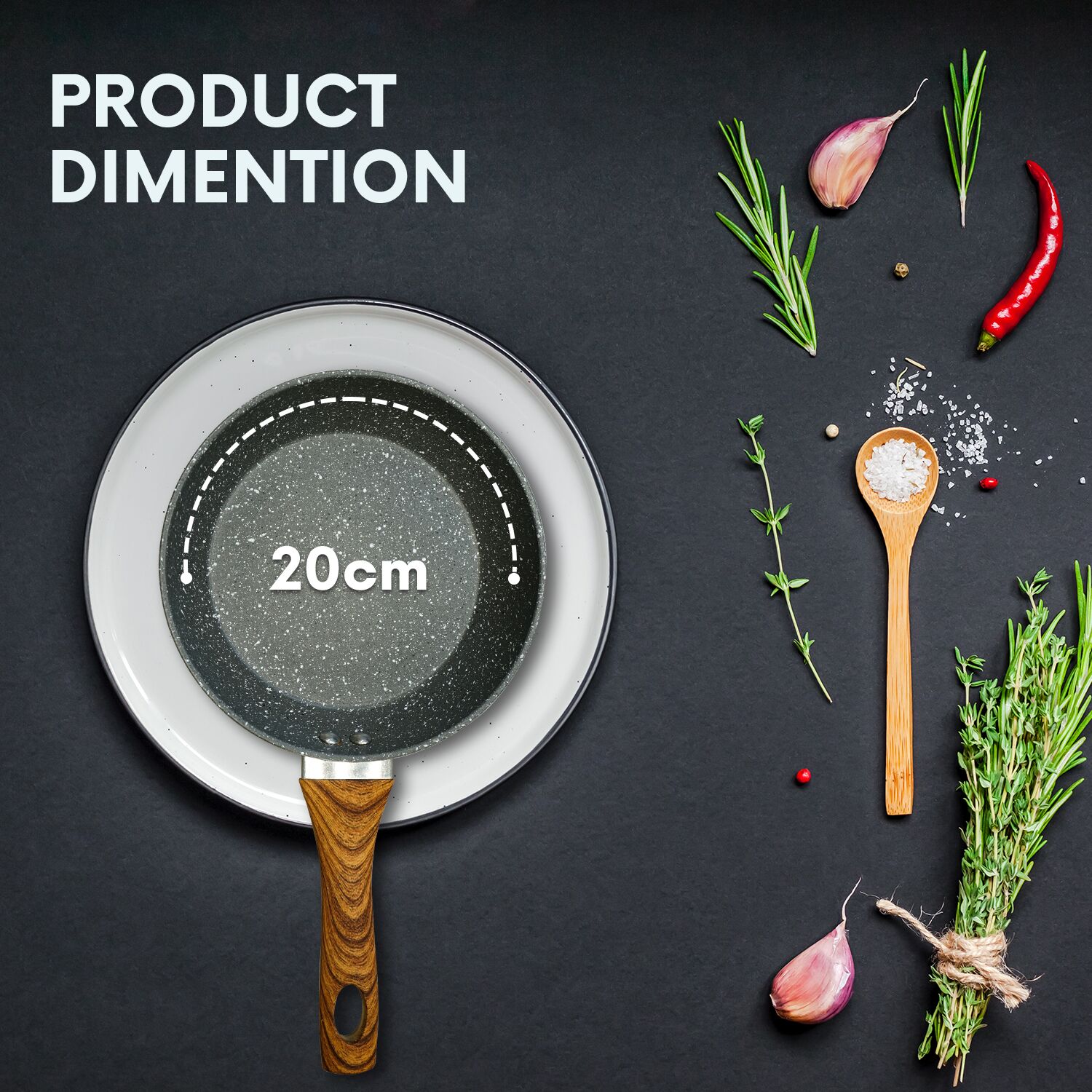 Cook with ease using this premium nonstick fry pan. At 20 cm wide and 5 cm deep, it’s the perfect size for smaller meals, single servings, and everyday cooking needs.