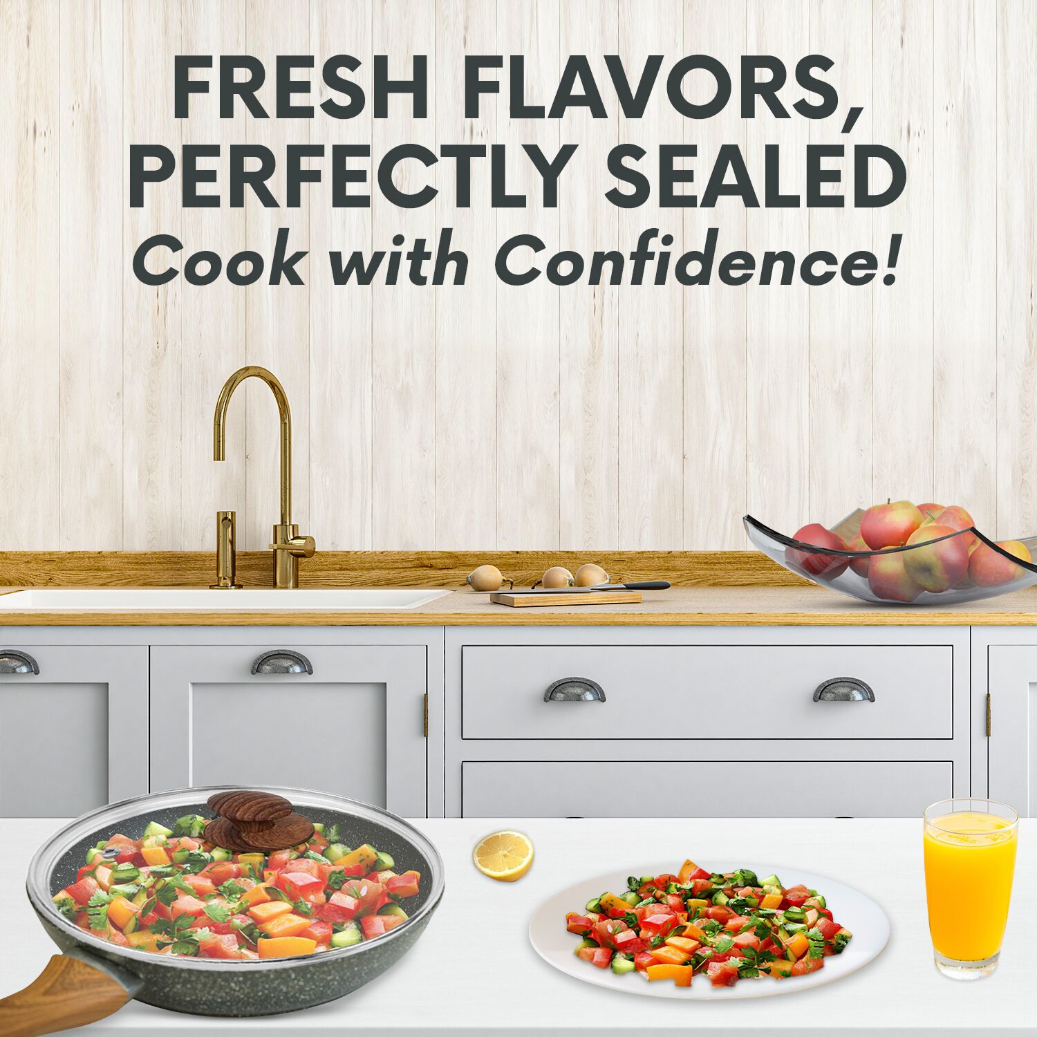 The pan’s interior coating ensures smooth, easy cooking without sticking. This feature makes the frying pans with lid perfect for eggs, fish, chicken, and vegetables while keeping cleaning stress-free.