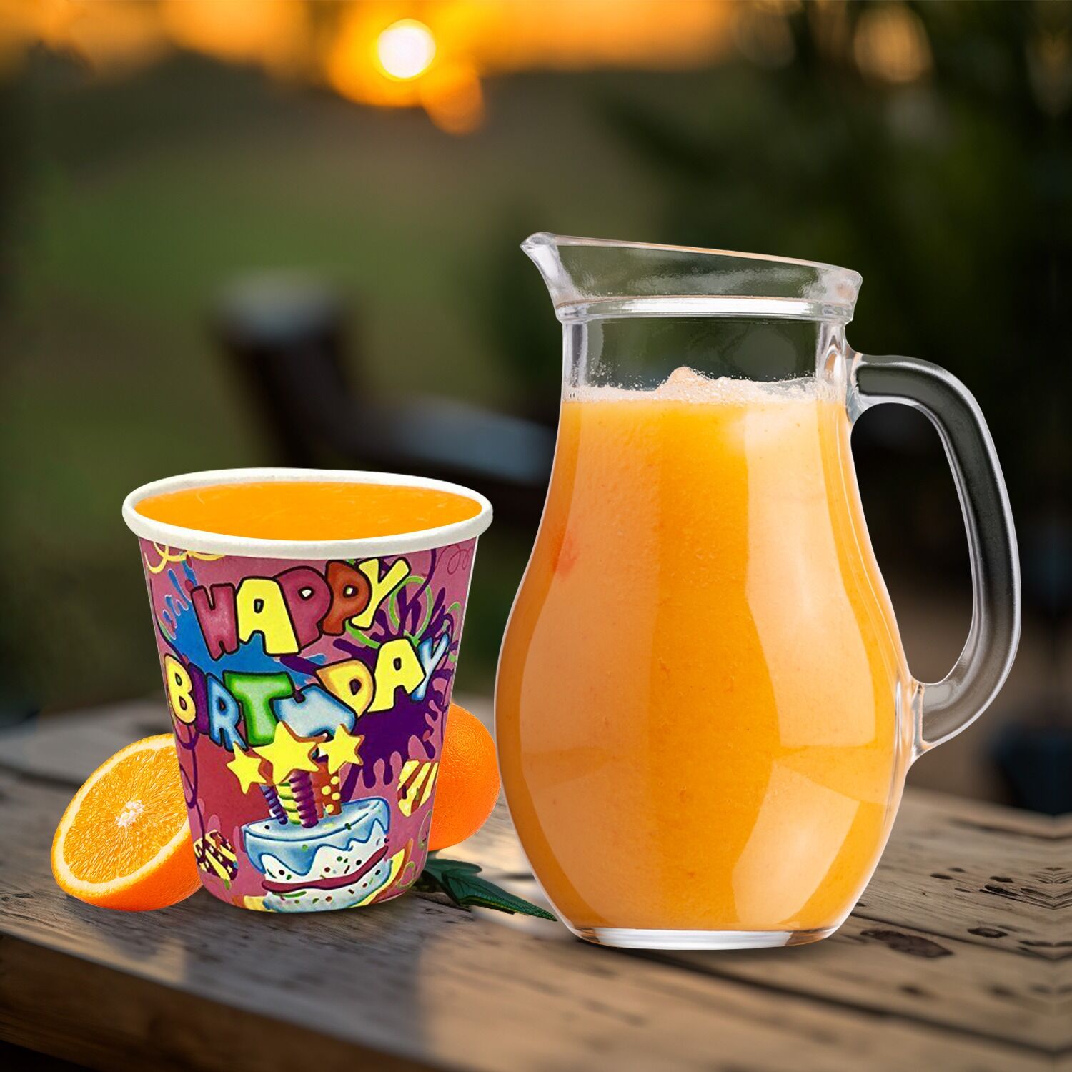 Each birthday paper cup comes in a convenient 7oz size, perfect for juices, fizzy drinks, or milkshakes. They are also excellent paper cups for ice cream and desserts.