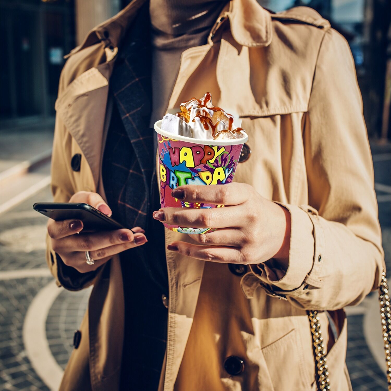Crafted from high-quality materials, every birthday paper cup is sturdy, reliable, and leak-proof. Whether used as paper cups ice cream holders or for hot drinks, they remain durable throughout.