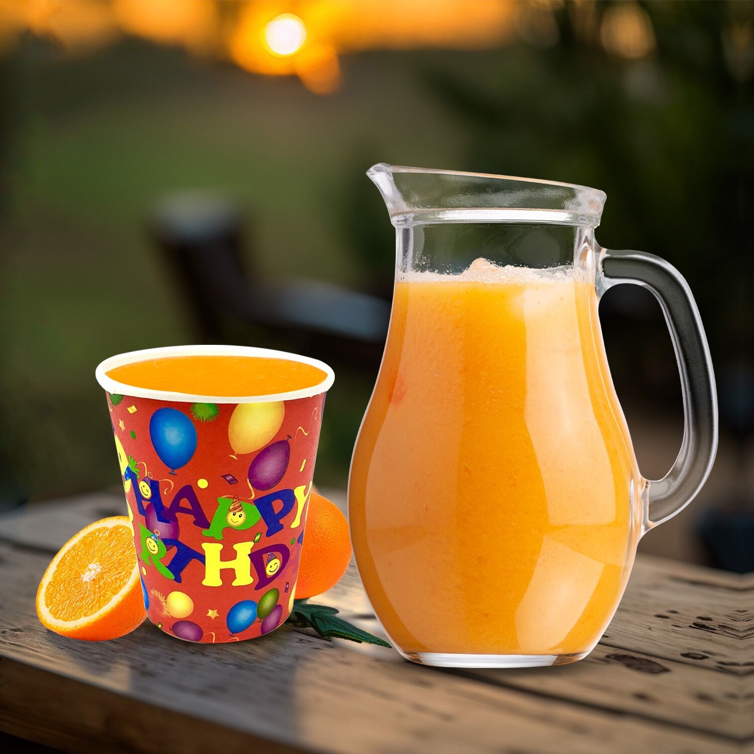 Each disposable birthday cup comes in a practical 7oz size, suitable for juices, milkshakes, and soft drinks. These cups are also versatile enough to be used as paper party cups for snacks.