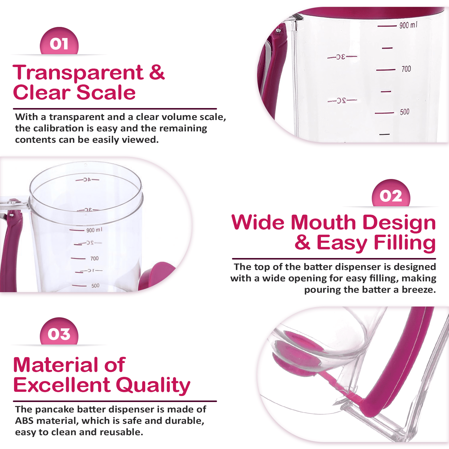 Perfect for pancakes, waffles, muffins, and crepes, this batter dispenser handles various batters effortlessly. Its no-mess design ensures clean baking, making it the ultimate pancake mixer and dispensing tool.