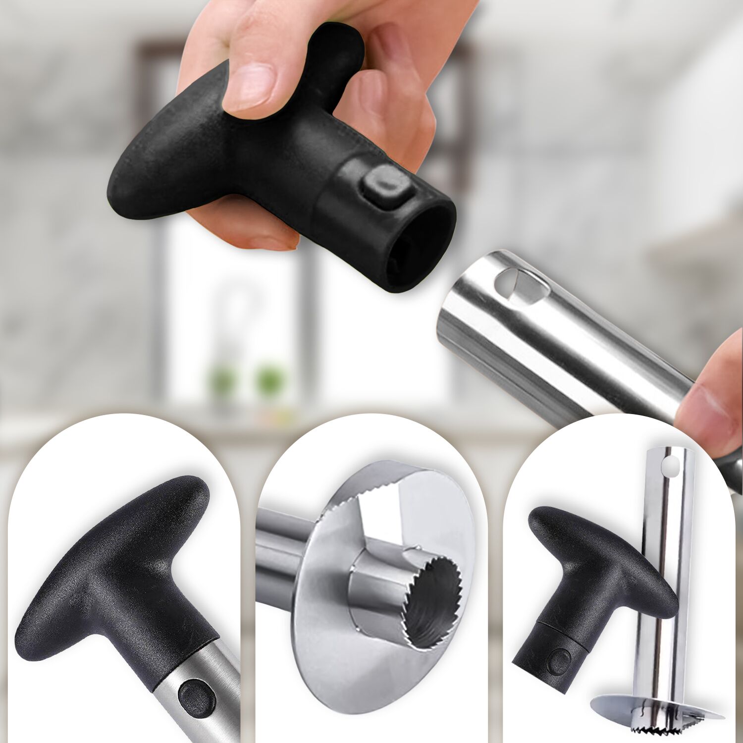 This pineapple peeler and corer features a T-shaped, non-slip handle and a detachable shaft, making it comfortable to grip, easy to twist, and simple to clean after use.