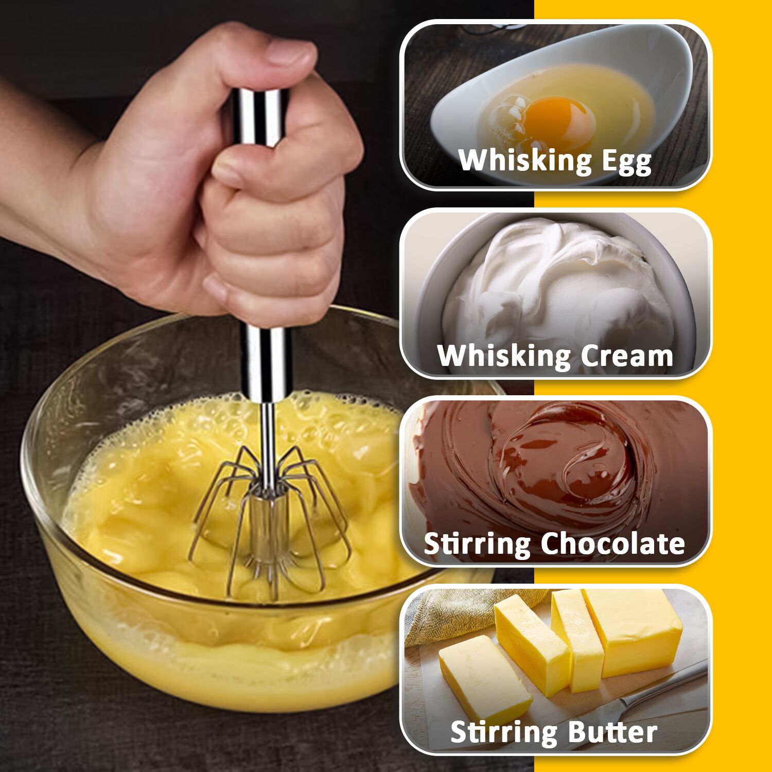 With a simple push-down motion, it effortlessly spins and whisk your ingredients, making life in the kitchen a breeze. Say goodbye to manual whisking and hello to effortless perfection. A must-have tool for any cooking enthusiast, it takes the effort out of whisking with impressive ease