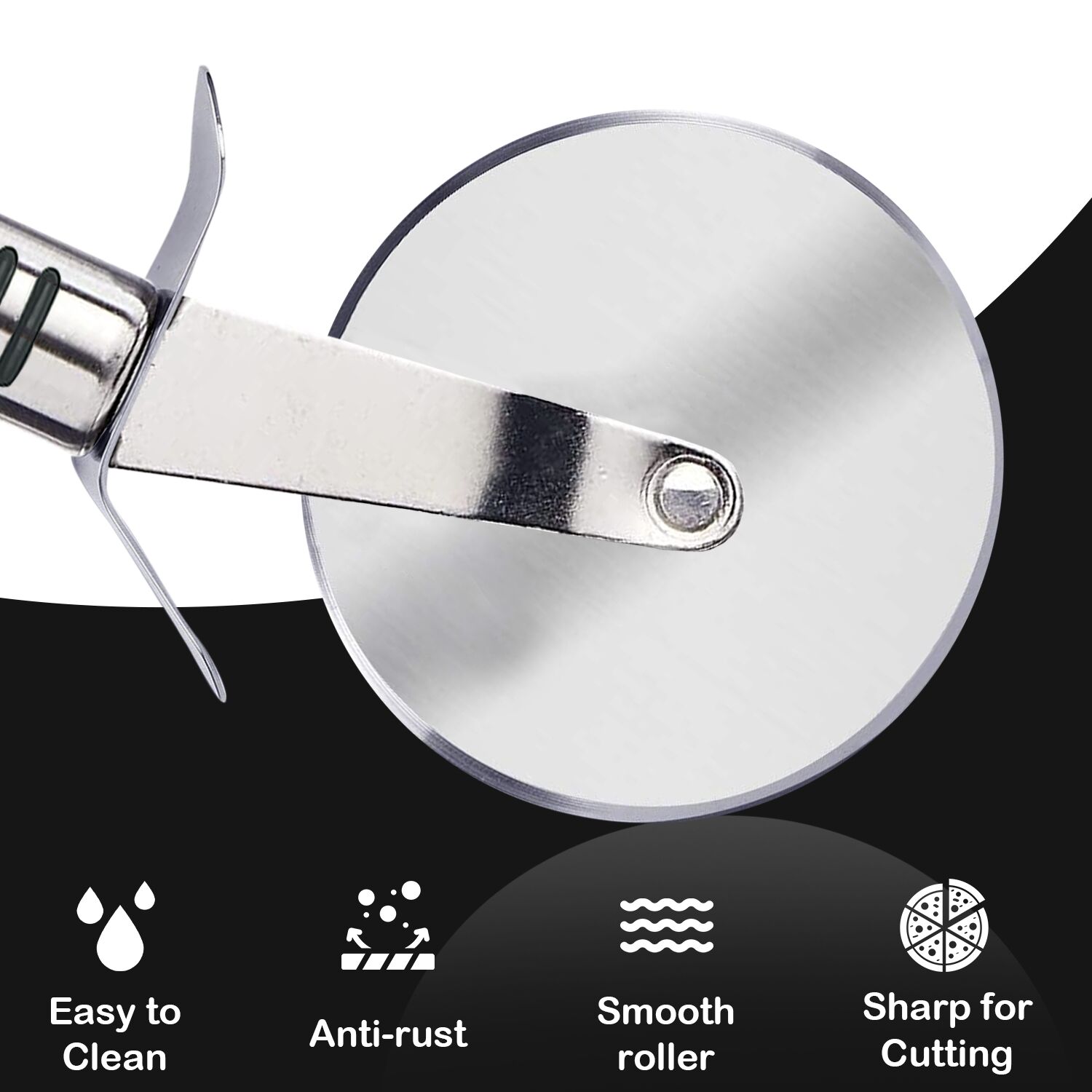 Made from food-grade stainless steel, the pizza cutter wheel features a 3.5-inch sharp disc. It glides through pizzas, pies, crepes, and pastries with ease, offering long-lasting performance.
