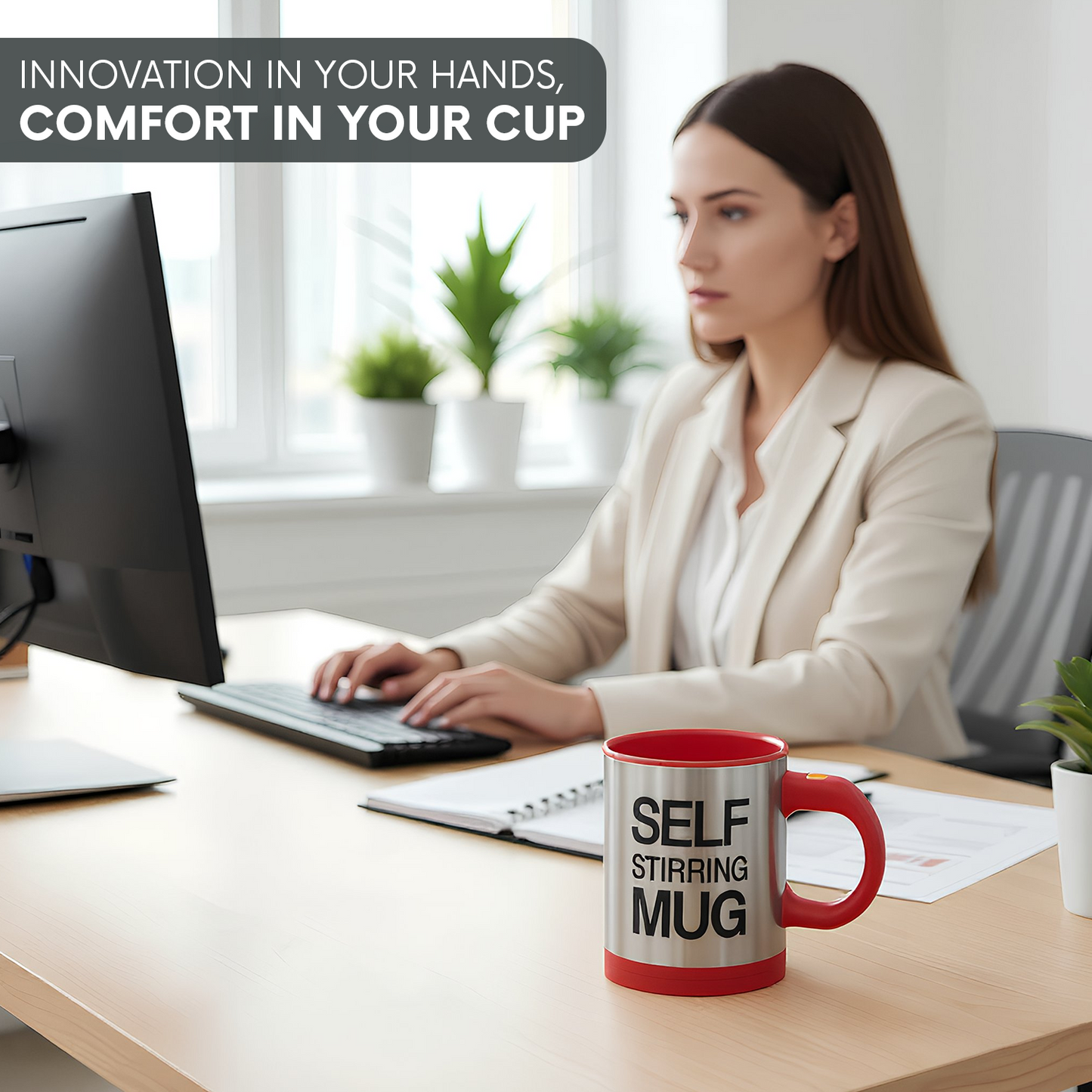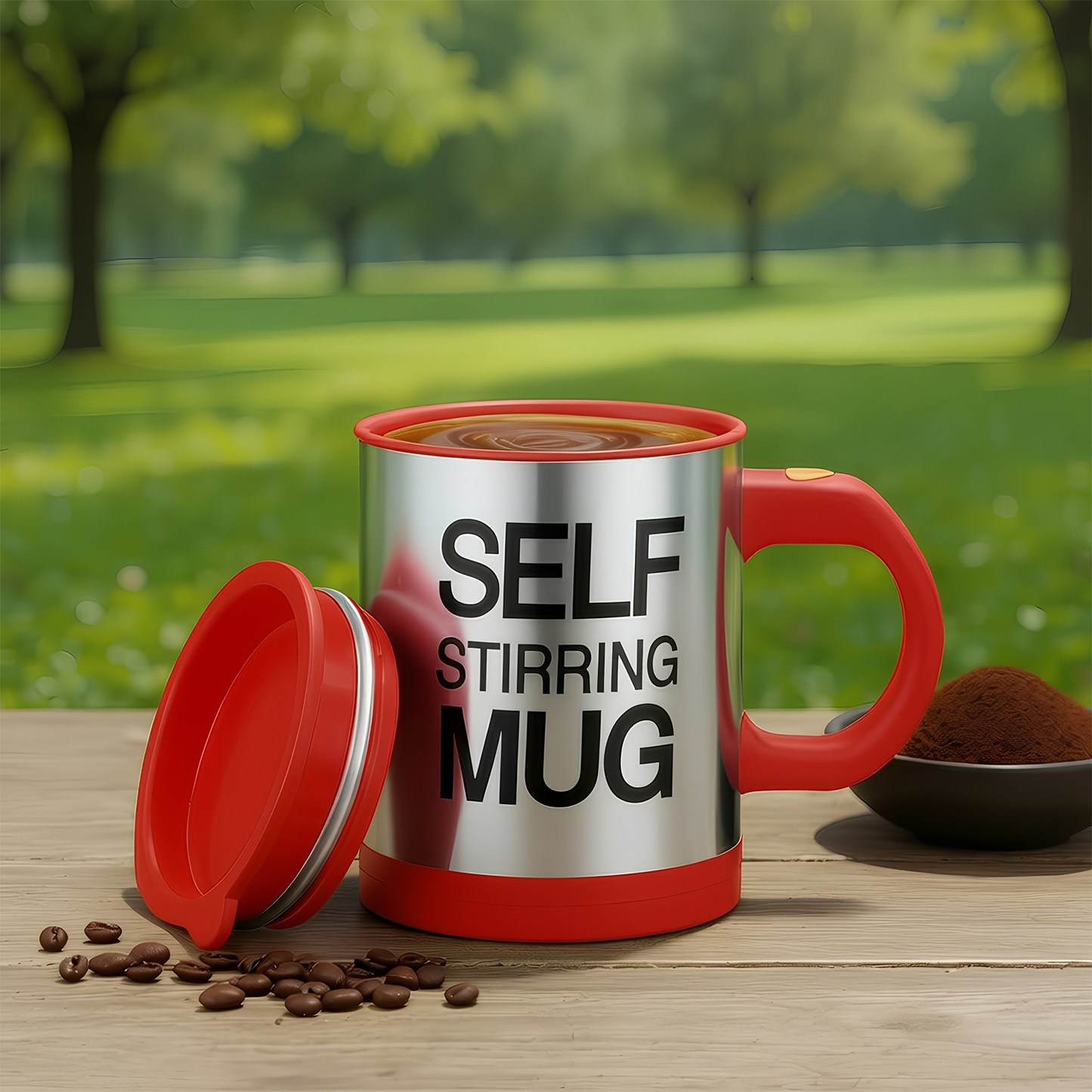 This self stirring mug makes enjoying coffee, tea, or hot chocolate effortless. The electric stainless steel mug spins to mix drinks automatically. With a 450ml capacity and secure lid, it's perfect for home, office, or travel. and makes a practical gift for men, women, and kids.