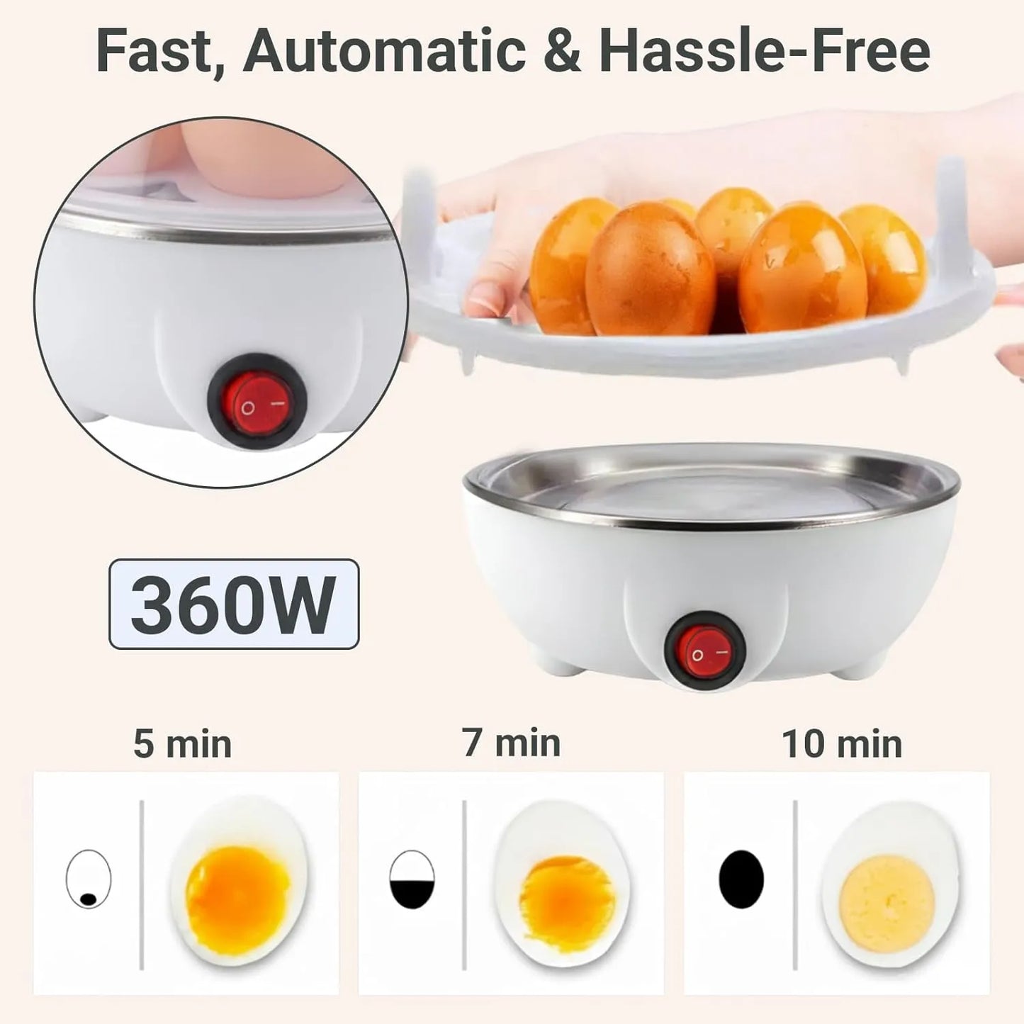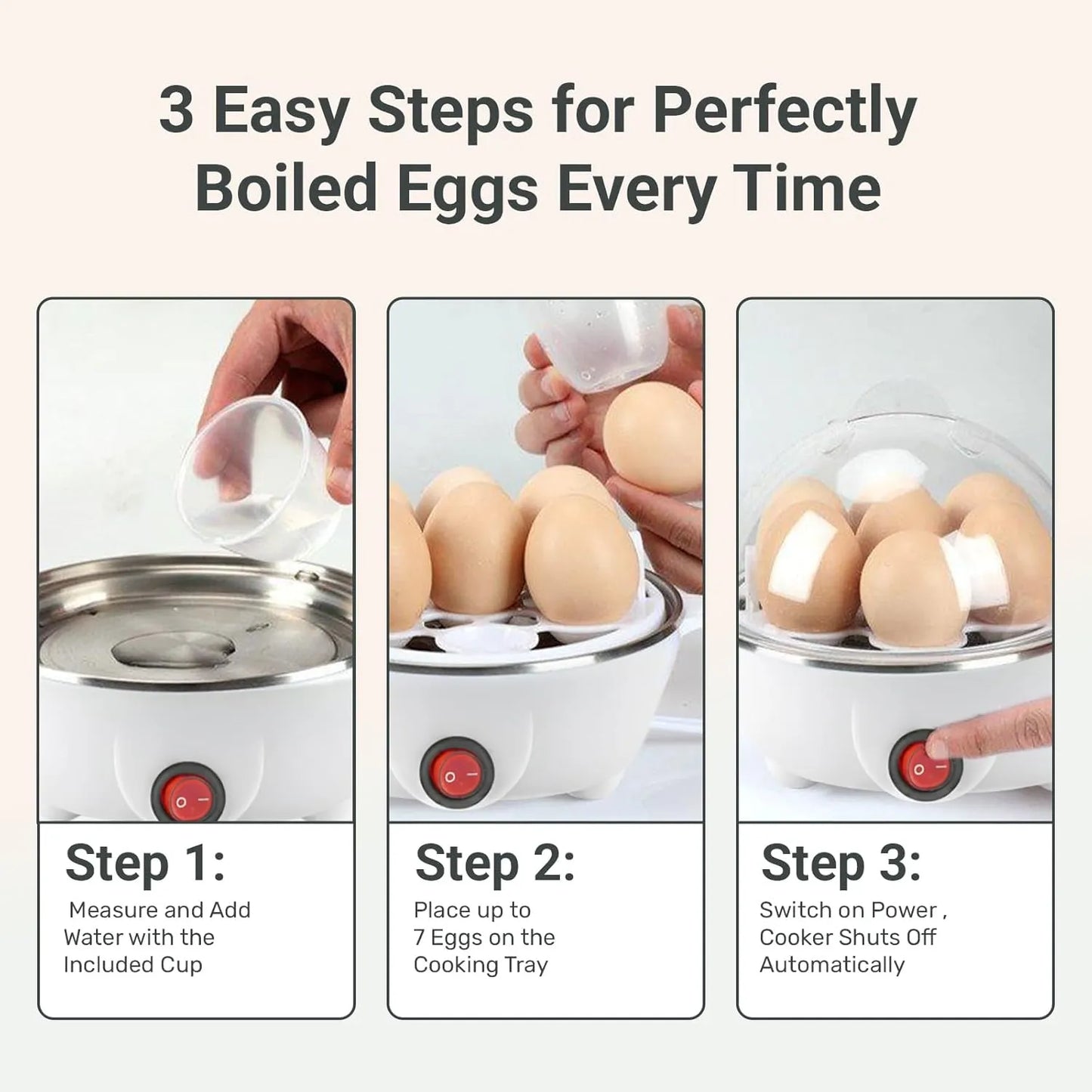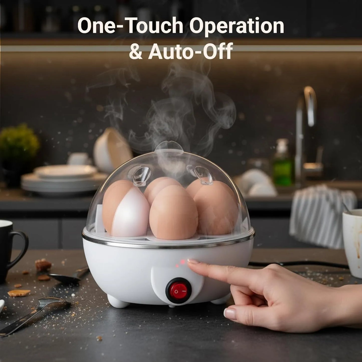 7-Egg Electric Boiler – Auto Shut-Off with Steamer Lid